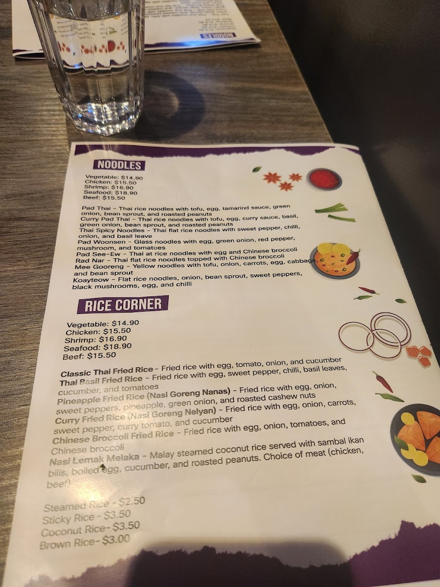 For those craving noodles, the Pad Thai is a must-try. The Thai rice noodles skillfully tossed with tofu, egg, and tamarind sauce create a harmony of flavors that dance on your taste buds, further enhanced by roasted peanuts and bean sprouts. If you seek a unique twist, the Curry Pad Thai combines the traditional flavors with aromatic curry, making each bite an adventure. Another highlight is the Mee Goreng, a stir-fried yellow noodle dish that captivates with its rich ingredients, ensuring satisfaction with every forkful.